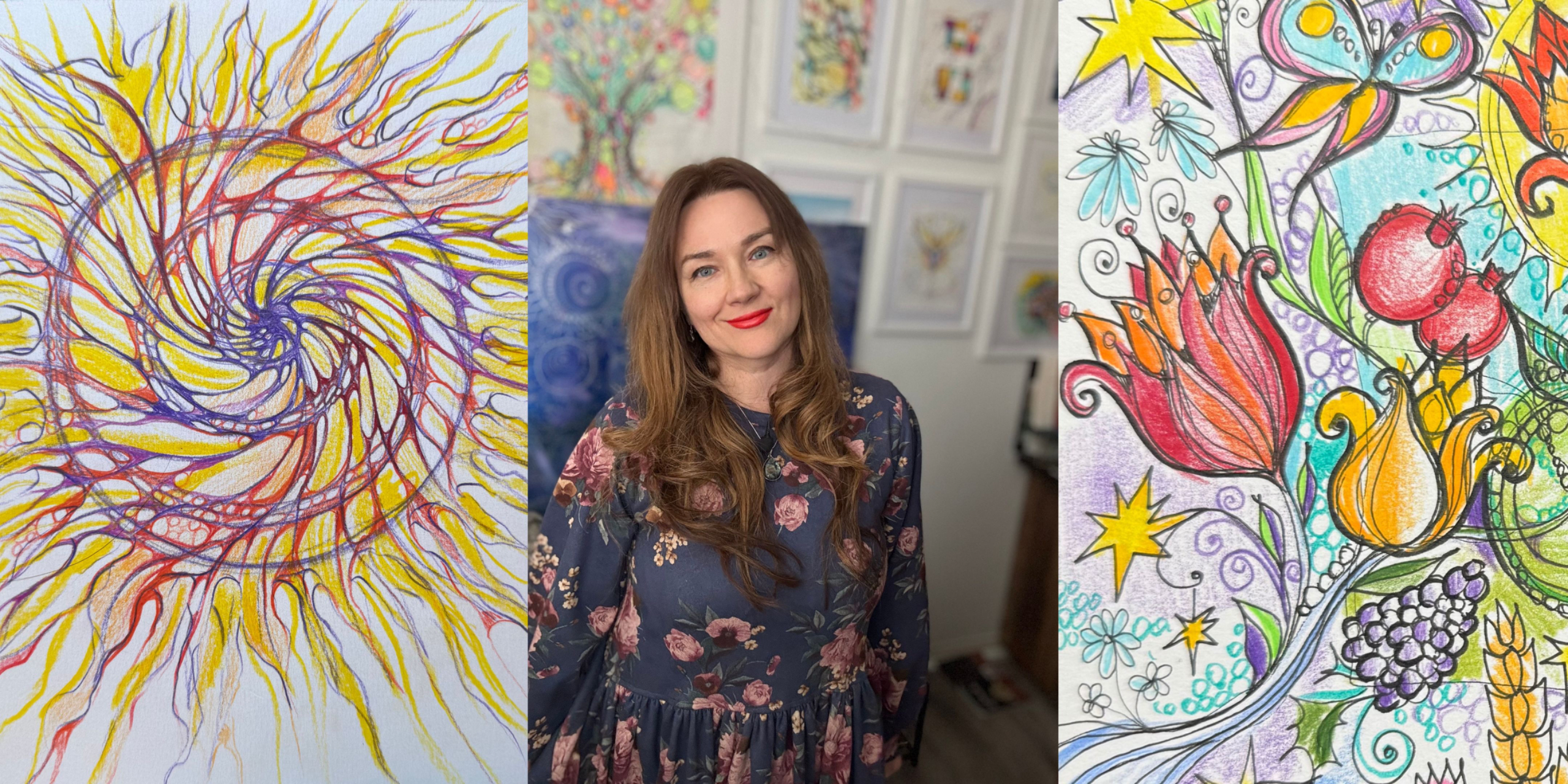 My work lives at the intersection of art, neuroscience, spirituality and conscious creation. I help people reconnect with their inner wisdom, regulate their nervous system, and gently transform their mindset through intentional drawing and creative practices.