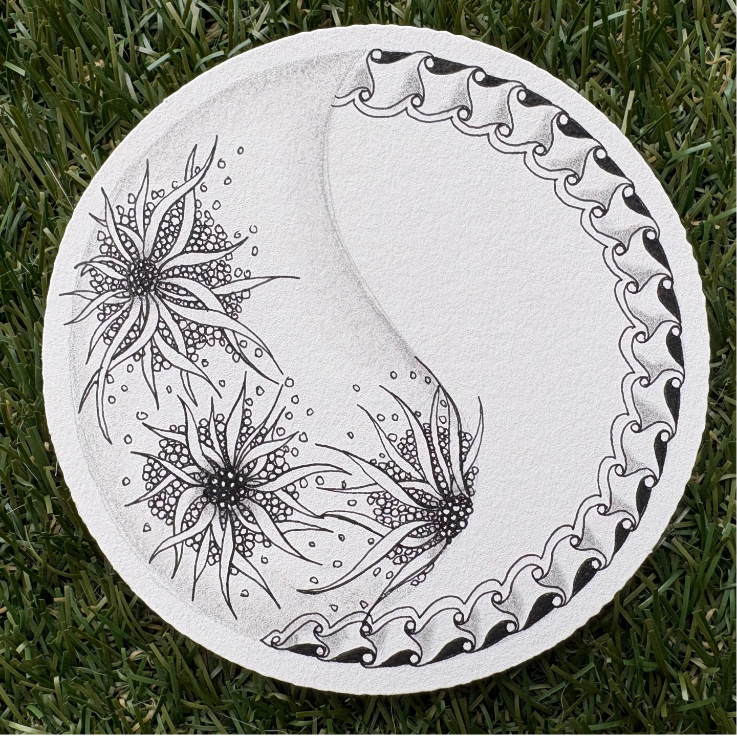 Zendala is a circular form of Zentangle drawing that combines structured patterns with the meditative rhythm of mandala art.